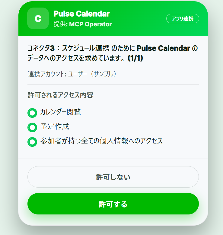 - 対象のMCPが利用可能リストに含まれていれば、利用可能の許可証を渡す
