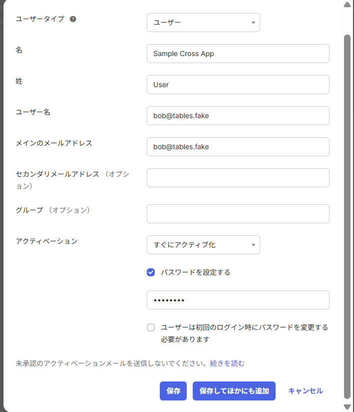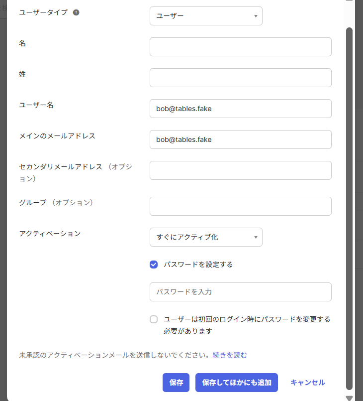 すると、以下のような画面が表示されるので、フォームにbob@tables.fakeを入力し送信します。
