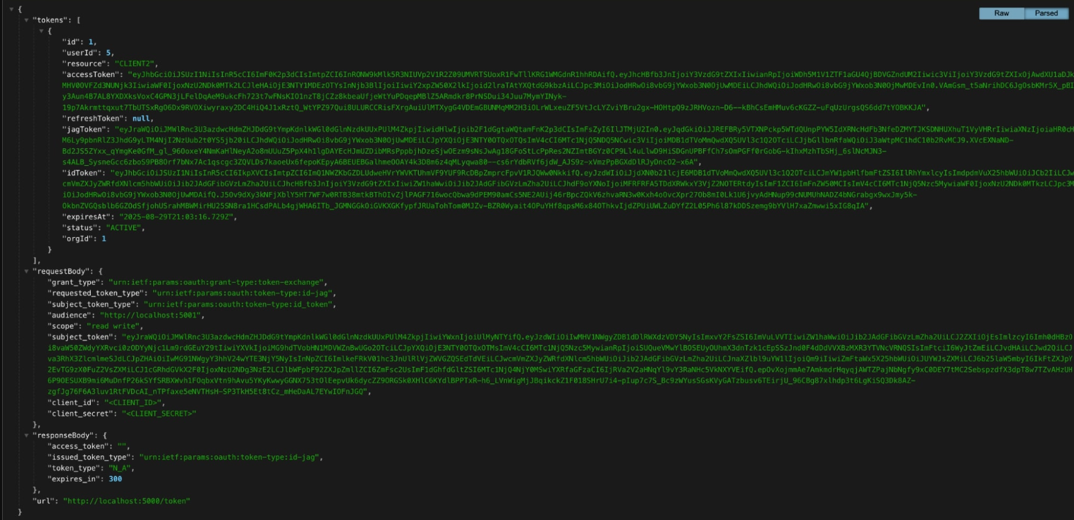 認証の時にToken Exchangeが行われ、JWTを取得するのが確認できます。(ちなみにOktaとToken Exchangeしている結果を直接見たい場合は、packages/authorization-server/jwt-authorization-grant-token-exchange.jsにconsole.logを仕込むと結果が確認できます)